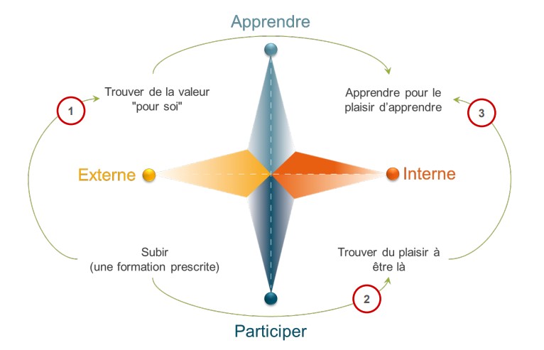L’axe vertical porte sur « ce pour quoi l’apprenant vient en formation » :