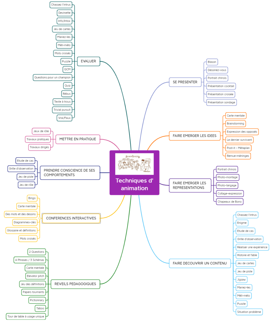 Si certaines techniques d’animation sont très connues comme le brainstorming, d’autres demandent à être précisées. Vous trouverez ci -dessous des fiches vous proposant différentes techniques d’animation afin de vous aider à les mettre en pratique en fonction de vos choix pédagogiques.