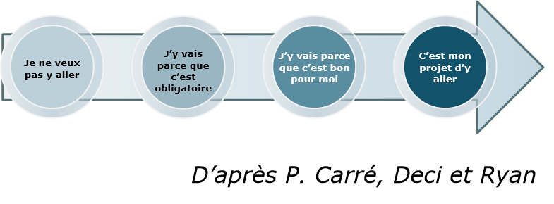 Les chercheurs (P. Carré, Deci et Ryan) situent les degrés d’auto-détermination dans un continuum.